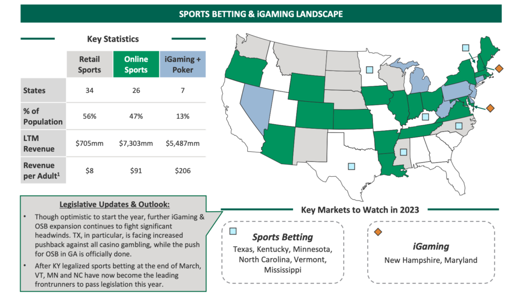 Consider this: 26 states currently allow legal online sports betting, covering 47% of the population. Casino and poker offerings are live in just seven states, serving 13 percent of the population.